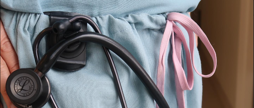 Our magnetic stethoscope clip holder keeps your stethoscope secure and ready, without neck strain or tangled tubing.